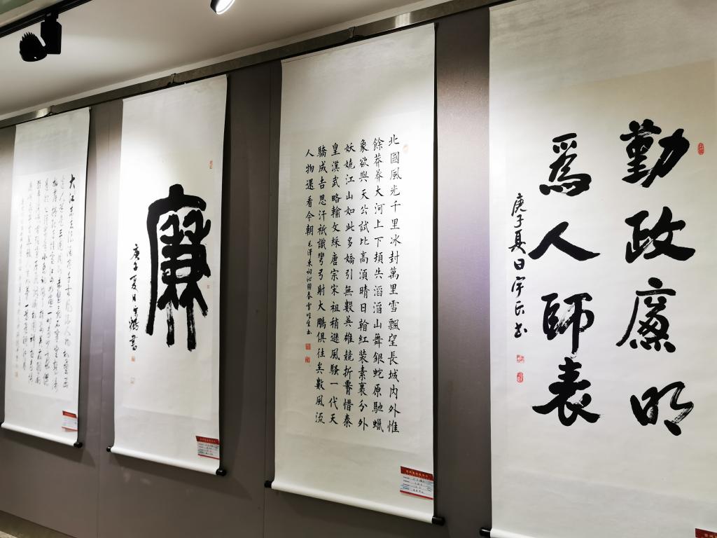 学校党委副书记师平安同志在讲话中指出,在“七一”这个特殊日子,举办校园廉政文化美术作品展,用传统的书画艺术形式宣传反腐倡廉的时代内容,是党风廉政建设和反腐倡廉宣传教育工作的鲜活形式。他强调,加强反腐倡廉文化建设,是认真贯彻落实党的十九届四中全会精神、十九届中央纪委四次全会和省纪委十三届四次全会精神的重要举措,是推进反腐倡廉建设的一项基础工程。他希望广大师生通过欣赏党风廉政书画艺术作品,能够受到教育和启迪,提高思想精神境界,充分发挥廉政文化的教育、示范、熏陶和导向作用,引导广大师生牢固树立廉洁自律意识,营造风清气正的良好政治生态,形成崇廉、尚廉的良好校园文化氛围。