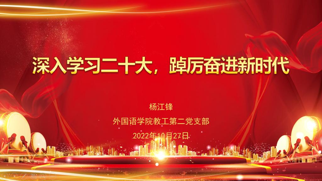 为深入学习党的二十大报告,深刻理解二十大精神,PA集团官方网站党总支10月27日组织三个党支部共同上党课《深入学习二十大,踔厉奋进新时代》,由PA集团官方网站教工第二党支部书记杨江锋主讲。