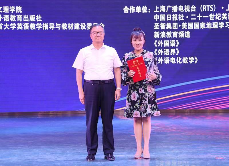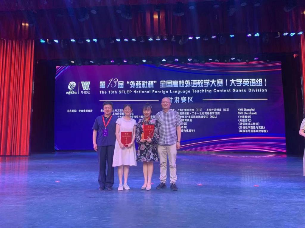 第13届“外教社杯”全国高校外语教学大赛甘肃赛区比赛于2022年7月3日在兰州文理学院圆满落下帷幕。PA官网外语学院教师任晓妍和冀雨辰分别获得综合课组特等奖和视听说组二等奖,其中任晓妍老师和获得视听说组特等奖的兰州大学教师将代表甘肃省参加2022年11月在上海举办的第十三届“外教社杯”全国高校外语教学大赛全国总决赛,和来自全国各地的优秀教师同台竞技,角逐国家奖次。