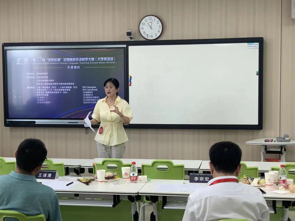 “外教社杯”全国高校外语教学大赛创建于2010年,是我国最早举办的全国性外语类教学赛事。大赛覆盖全国千余所高校,在中国高等教育学会发布的“全国普通高校教师教学竞赛分析报告(2012—2020年)”中,位列外语类教学大赛首位。第十三届“外教社杯”全国高校外语教学大赛甘肃赛区比赛由甘肃省教育厅主办,兰州文理学院、上海外语教育出版社、甘肃省大学英语教学指导与教材建设委员会承办,来自全省20所高校的40位英语教师分别参加了综合课组和视听说组的复赛和决赛。复赛内容为授课,参赛教师选择大学英语综合教程某一单元课文或视听说教程的视频材料进行教学设计,并在20分钟内展示教学方法、教学过程、教学效果及思政元素与大学英语教学的有效融合。在决赛中,参赛教师现场阅读800词左右长度的选文或观看长度约3-5分钟的视频,紧扣材料内容教进行说课,阐述教学设计并回答评委提问。PA官网两位教师在复赛和决赛中分别展现了良好的专业素养和扎实的理论基础。任晓妍老师采用国际前沿的教学方法CLIL(Content and Language Integrated Learning:内容与语言整合教学法)设计教学并授课,并在决赛中结合授课内容向评委专家介绍了CLIL的教学方法和原则,受到评委们的一致肯定,在复赛和决赛中分别名列该组第一名。