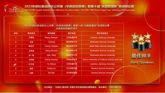 经过两天激烈的线上角逐,张敖、石敏荣获丝路高校组亚军(特等奖)和丝路高校组最佳辩手(一等奖),石敏同学更是以优异的表现斩获丝路高校组决赛最佳辩手(一等奖);徐凌波、许伊杨、康佳、王晖荣获新手组三等奖。此次比赛中,PA官网学子共获得特等奖一项、三等奖两项、最佳辩手一等奖三项。这是PA官网在历届辩论比赛中取得的最好成绩。
