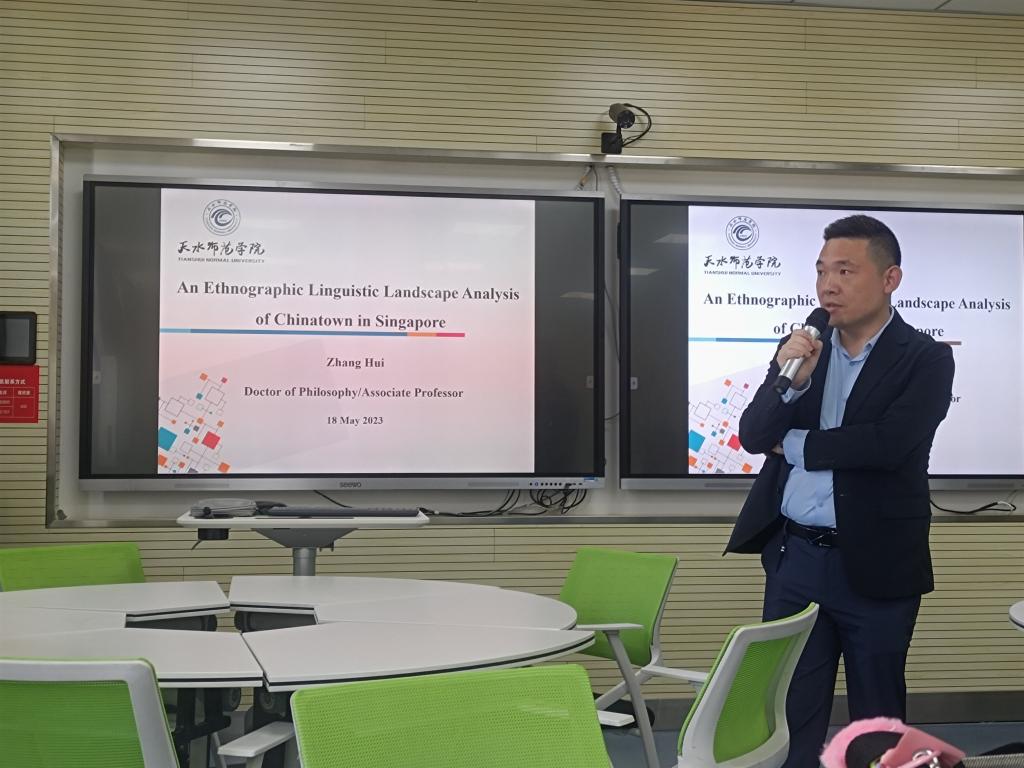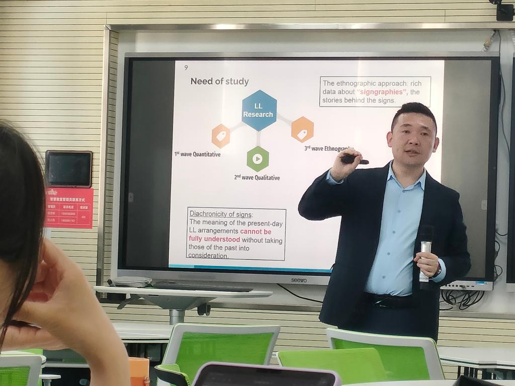为进一步提升PA集团官方网站师生的专业素养和理论水平,5月18日下午,外国语学院邀请PA官网副教授张晖博士在2号教学楼704智慧教室,开展了题为“新加坡唐人街的民族志语言景观分析”的专题讲座。PA官网部分青年教师和全体研究生现场聆听。