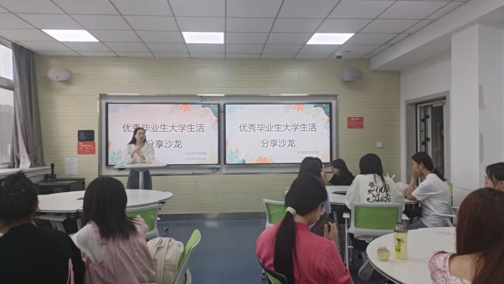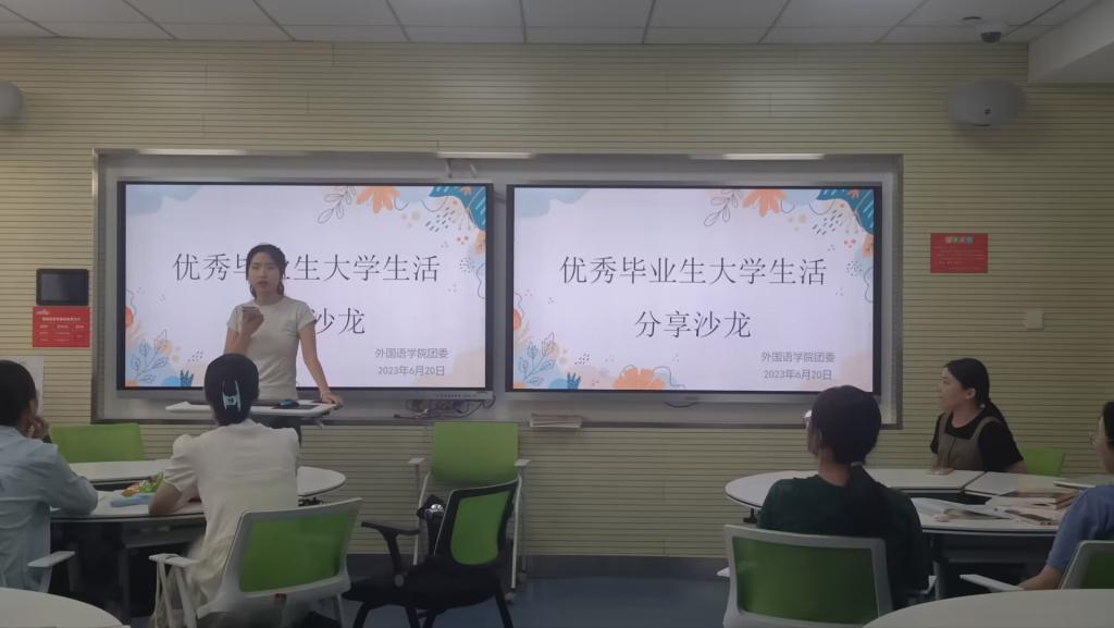 22级英语3班孙殊姝说:袁苗苗学姐对自己大学四年的生活和学习经验进行了总结,并给予我们学业上一些非常有用的意见,学姐积极向上的姿态、努力上进的样子让我们深受鼓舞,通过本次分享沙龙,我们积聚了前进奋斗的动力,并在优秀学姐的鼓励下立志刻苦钻研学业,不负父母、社会和国家所望。