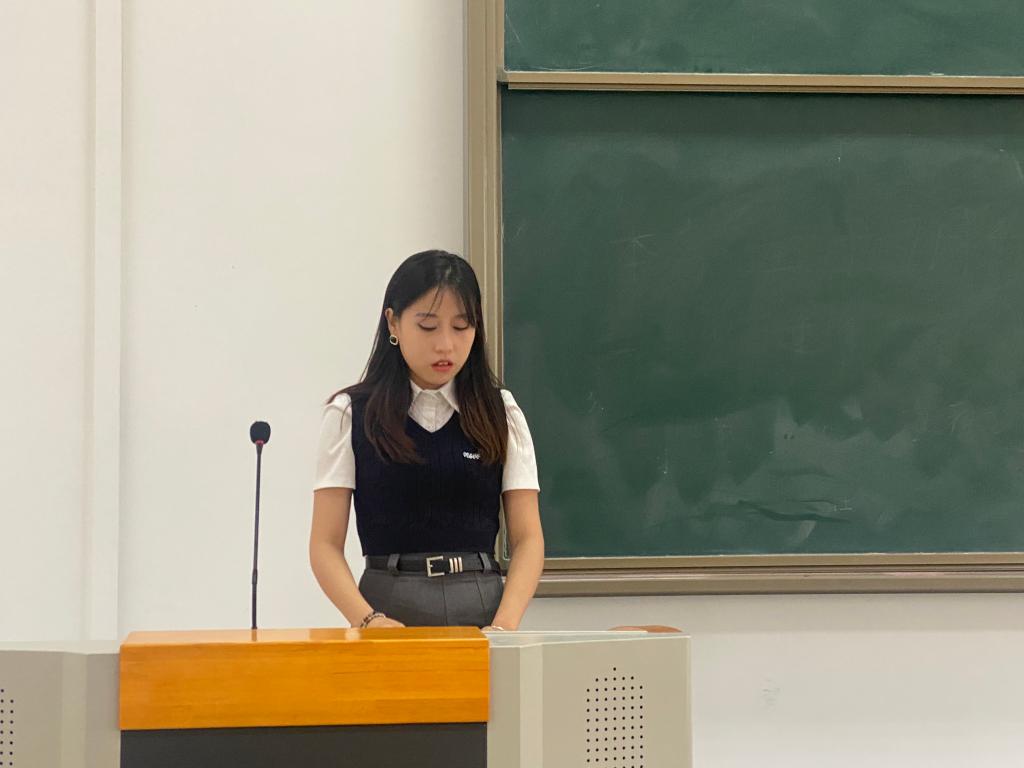 随后学生会主席杨林芳作为一名“过来人”,给2022级参训学生做了开训发言。学姐鼓励大家在未来的十多天里用军人的情怀、军人的姿态去践行青春的誓言、去体验生命的精彩,以更加饱满的姿态来迎接本次军训,并顺利完成任务!