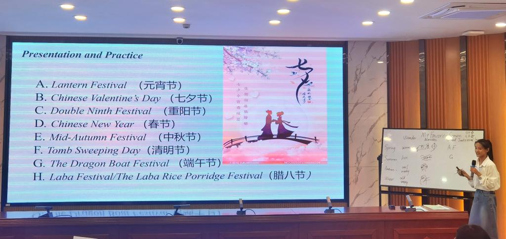 大赛分为即兴演讲、课堂教学展示、课后教学反思三个环节。余文静同学在授课环节将歌曲、古诗词和传统节日巧妙地融合到单词和课文讲解当中,课堂气氛活跃。王蓉同学在模拟上课环节采用歌曲导入复习单词,运用简笔画对新单词进行了详细讲解和扩展,口语流利,自信大方。马君茹同学以一首英文歌曲的演唱开始了自己的授课环节,亲和力强,游戏环节生动有趣。三位选手精神饱满、教态自然、声音洪亮、对教学内容熟练,展示了PA官网师范生的教学风采,受到一致好评。