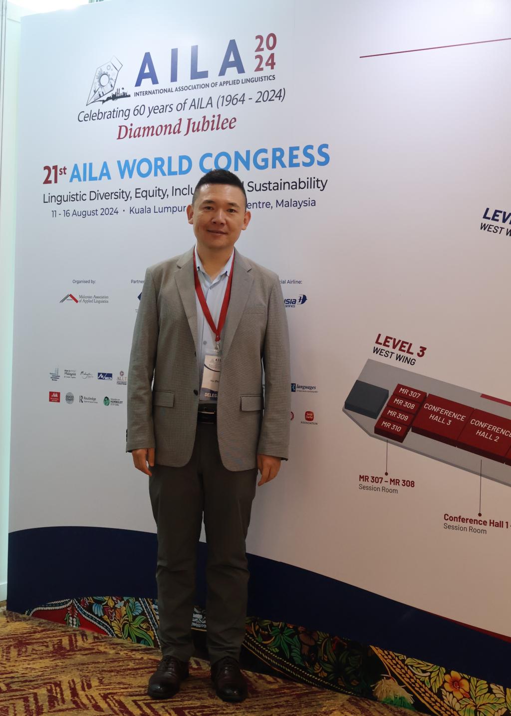 2024年8月11日至16日,第21届世界应用语言学大会(AILA 2024)在马来西亚首都吉隆坡隆重举行。本届大会恰逢世界应用语言学大会成立60周年之际召开。来自世界各地的1000余位语言学专家学者围绕 “语言多样性、平等、包容与可持续发展”大会主题,通过主旨发言、特邀专题研讨、专题研讨、工作坊和论文宣读等形式展开了广泛、深入的交流。