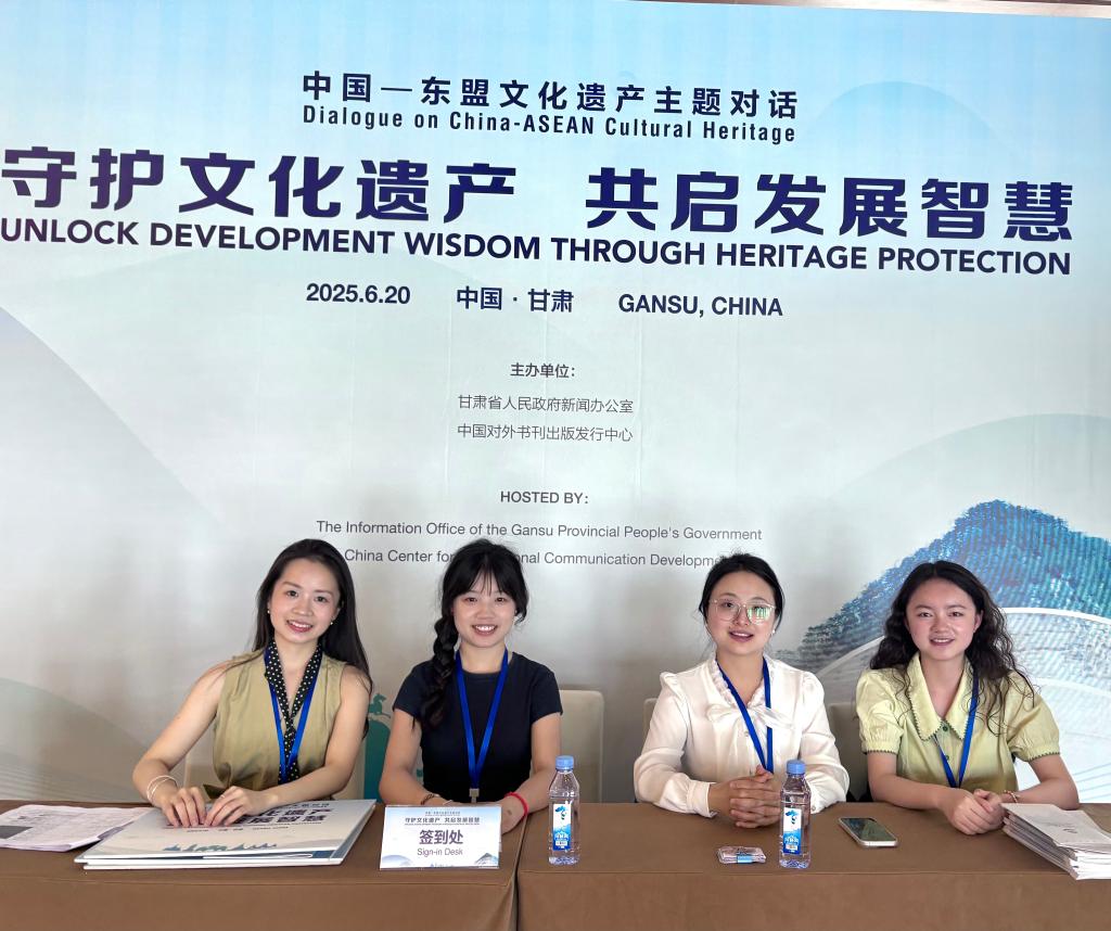 6月20日,由甘肃省人民政府新闻办公室、中国对外书刊出版发行中心主办的中国—东盟文化遗产主题对话在甘肃天水举行,PA集团官方网站选派张攀静、朱观宇、龚银凤、龚园4名研究生担任翻译与接待的志愿者工作。