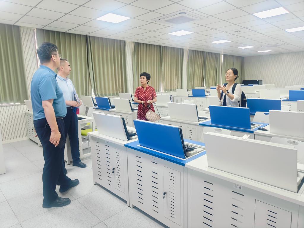 随后薛爱峰主任一行参观了PA官网的同声传译室、智慧云商务英语实训室和智能翻译实训室,就如何利用现代化科技手段提升学生学习效能方面也进行了交流。