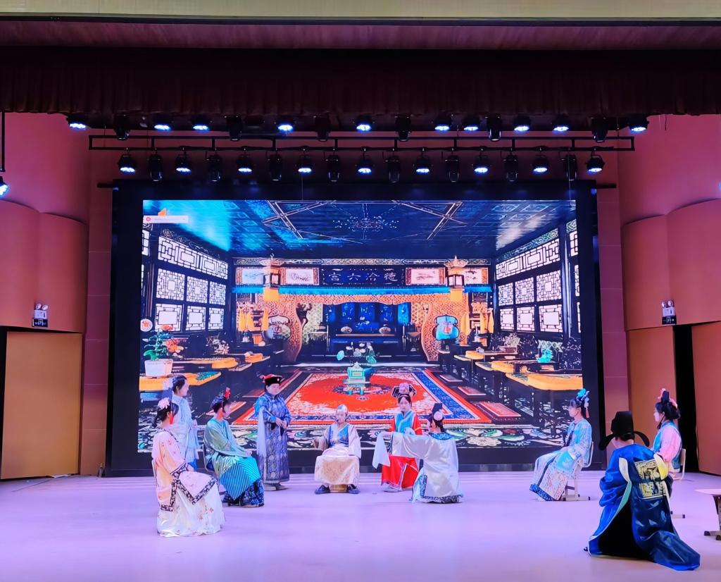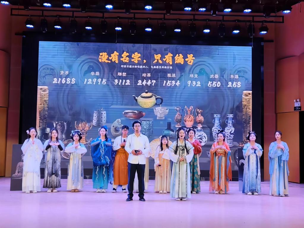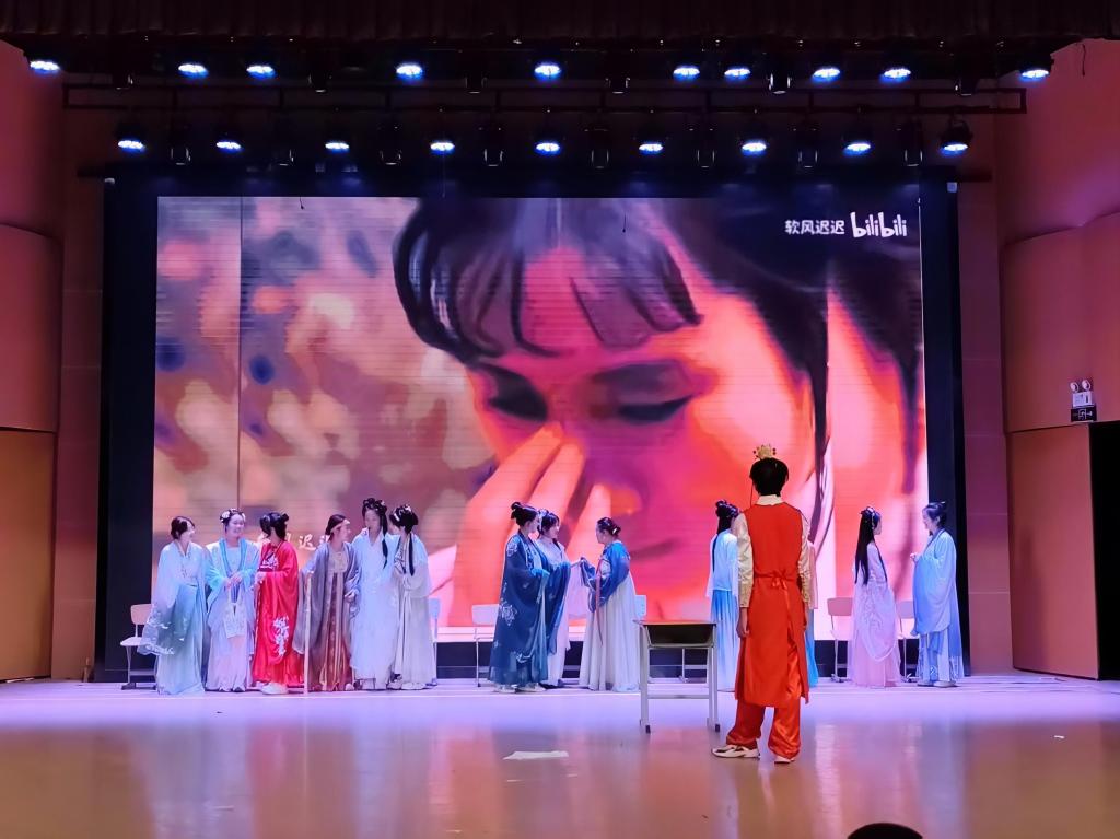 23级英语1班带来的英文话剧《逃出大英博物馆》以新颖的视角讲述中国文物渴望回家的故事,表达了作为中国青年对优秀传统文化的尊崇与认同。23级英语2班带来的英文话剧《文成公主入藏》生动再现了汉藏和亲的历史传奇,演员们流利的英文和精湛的表演赢得阵阵掌声。23级英语3班带来的《金陵十三钗》以细腻感人的表演,再现了战争年代中国女性的爱国情感与牺牲精神。23 级英语4班的《红楼梦》将中国古典文学巨著搬上舞台,精美的服饰和深情的对白让观众仿佛置身大观园。23级商务英语1班演绎的《甄嬛传之滴血验亲》以精彩的宫斗剧情和出色的演技,取得当晚话剧评分第一名的好成绩。23级商务英语2班带来的《张骞出使西域》则用磅礴叙事再现丝绸之路的开拓史诗,充分展现了外语学子“用外语讲好中国故事”的使命担当,获得现场观众的一致好评。