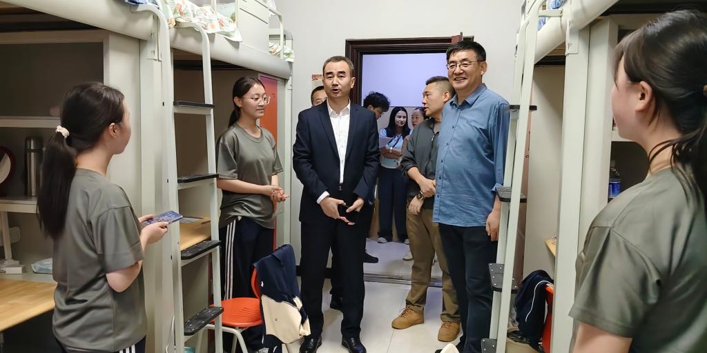 在走访宿舍过程中,学院领导与新生进行了亲切交谈,详细询问了学生对新环境的适应情况、入校后的具体感受以及对学校的初步印象。学生表示,自步入校园起,便深切感受到学长学姐的热情接待与学院的悉心关怀,学校温馨的校园氛围与浓郁的学习风气亦令其深受感染。教师还针对新生初入校园的具体状况,提示学生可能面临的各类问题,并明确告知"有问题找老师"。师生间的互动交流使宿舍洋溢着温馨愉悦的气氛。
