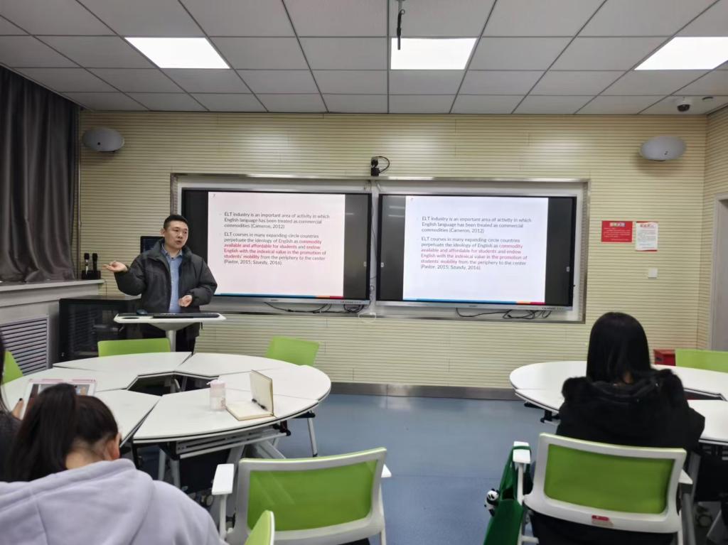 2024年12月5日下午,PA集团官方网站特邀语言学博士、副教授、PA集团官方网站副院长张晖在2号教学楼704教室作题为《国内在线英语教学平台广告“英语商品化”的多模态分析》的学术讲座。PA官网23和24级研究生60多人参加了讲座。